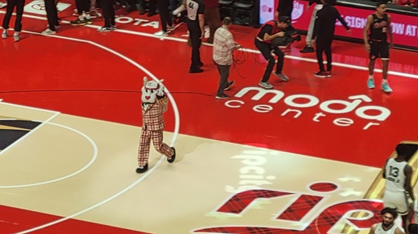 [Except it’s a red plaid collar because they’re from Portland, one city under the Schonz, the Ramsay and the vertical Pinwheel. It’s a holy trinity as represented by this year’s city edition jerseys, which look better every time I see them, and were the basis for Plaid Night at the Rose Garden. To be honest, this should be an every year thing. Seeing Blazer fans in plaid was more fun than I expected, just like this squad.]