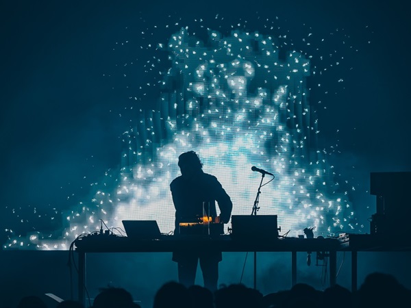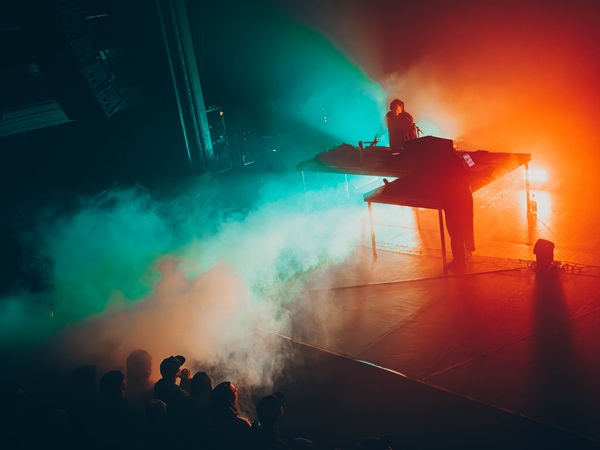 To be sure, Lopatin’s show had its highlights. The stage was designed with two tables in an L-formation. On the central table was Lopatin’s workstation. Placed in front was a crystalline lamp that reacted to music with strobe and chromatic effects to dramatic effect as the lights went black to start the show with “World Outside/Inside World.”