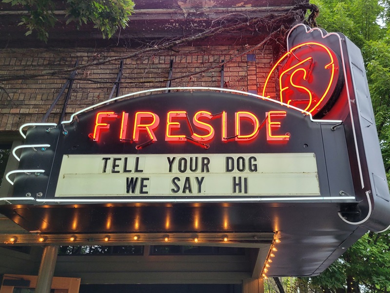 Walking down 23rd Avenue, I passed under the marquee of Fireside Grill. Per tradition, the Grill doesn’t use their marquee for information of what’s playing—nothing’s playing, they’re not even a theater—they just use it for silly messages. But what I saw was a sign and, forging on ahead, realized I would have to come back to snap a picture.