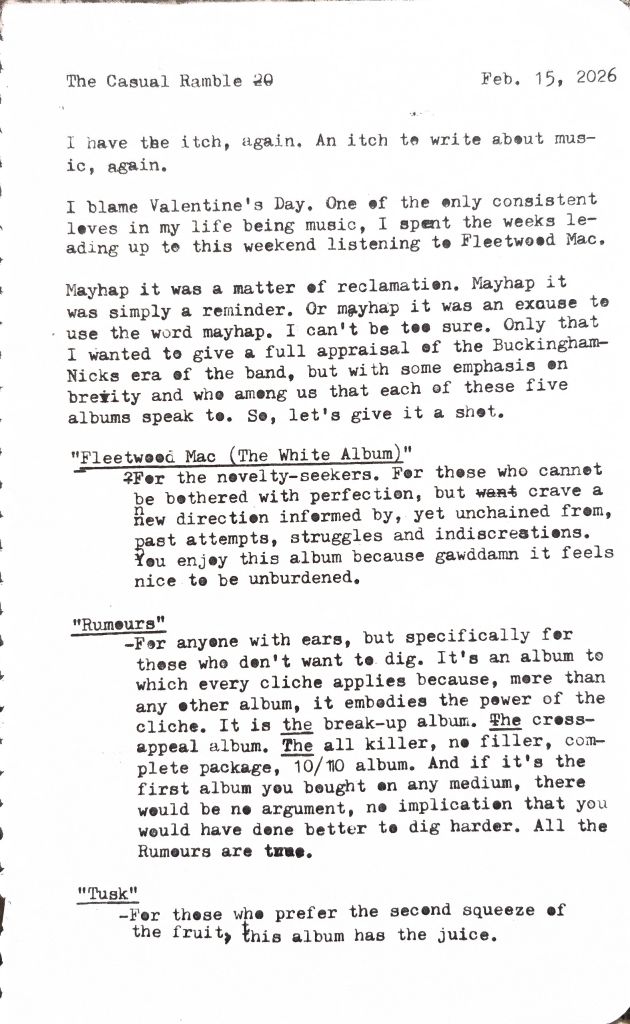 Moreover, Valentines Day kind of snuck up on me, and I was not having it. So I just listened to plenty of Buckingham-Nicks era Fleetwood Mac because that group, too, was not having any of it. So much so that I decided to do a little ramble on all five albums from that era of the band.