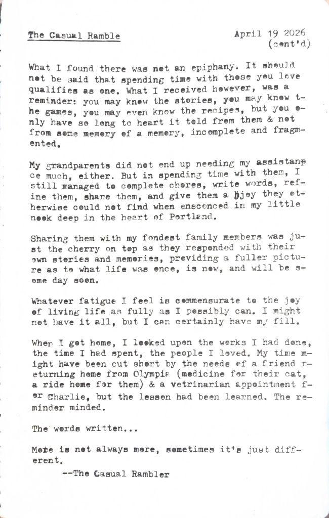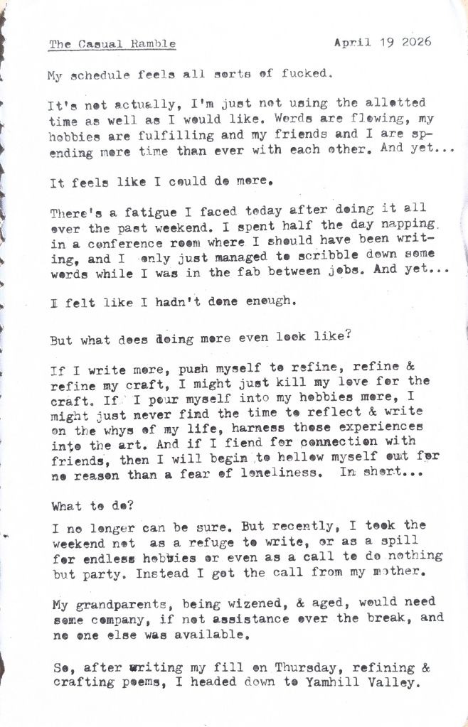I’d like to give thanks to my wonderful patrons, Jennifer, Michael, Zero and Phil, as well as the many free members of the Casual Ramble. Without you, everything that has been would not be and everything that is to come would not happen. This post was released a week early to my Patreon supporters, if you’d like to receive early access to poetry, short films and other works, you can join the Casual Ramble Patreon via the link below!